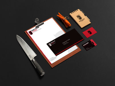 I wanted to keep to the same concept of a higher-end steak house with some of the characteristic roughness and a strong black and red color scheme. I attempted to tone down the number of small details and unnecessary details in the original design and instead focused on a more universal and varied logo setup. Keeping true to my design professor's concept-pushing philosophy, I wanted to find a healthy merge of concepts (e.g., a black stallion and steakhouse imagery). After a lot of sketching and prototype logos, I couldn't stop loving the current design, a mix of a stallion and a frame shaped like a grill spatula.