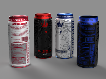 Imperium, a project initiated before the COVID pandemic and completed remotely, tasked us with designing energy drinks. Amidst a list of uninspiring names like Zing and Zap, Imperium stood out, despite my initial reluctance to use my own submission. My Professor emphasized the theme of "Supreme power," leading me to envision monarchical imagery, notably an animal in a crown. Choosing an unconventional route, I settled on the "Rat King''. Opting to reflect my signature aesthetic of dark tones with vibrant accents. After refining the design, approval paved the way for crafting three flavor variations, I chose to include two standard and two diet options, the latter adopting the Latin-inspired name Imperium Nil. Originally intended for physical production, the project shifted to digital modeling using Adobe Dimension due to lockdown restrictions, marking a transition from in-person to remote learning and work dynamics.